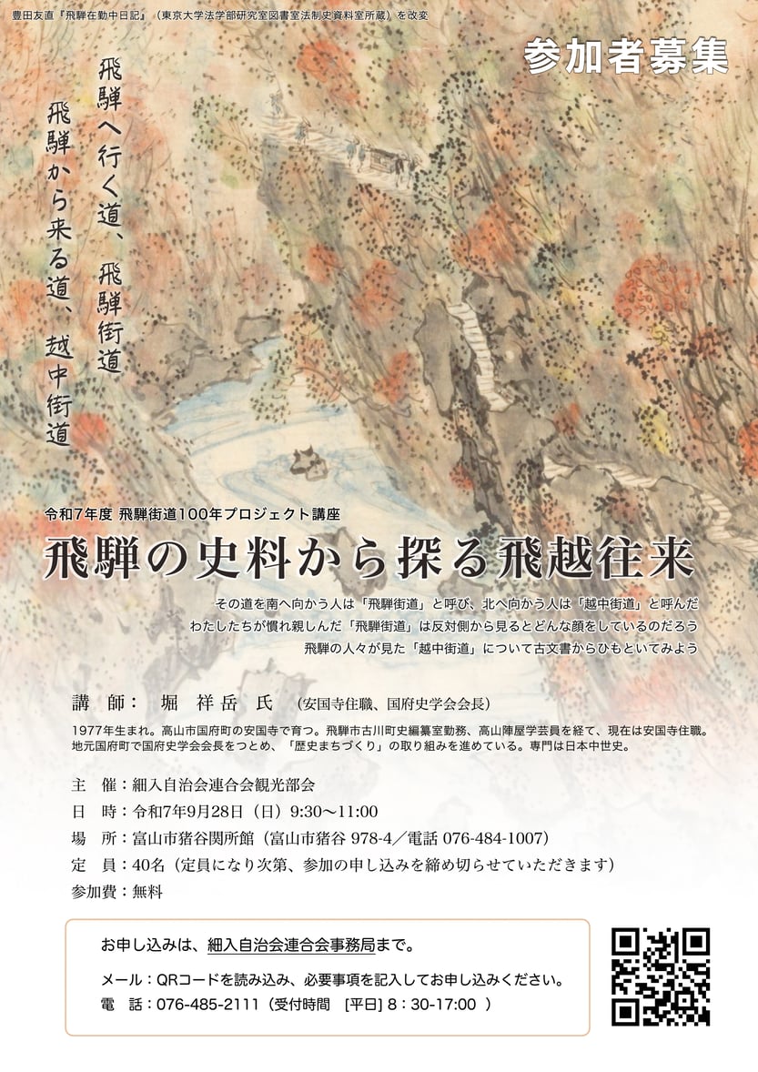 昨年に引き続き、令和7年度 飛騨街道100年プロジェクト講座を開催します。